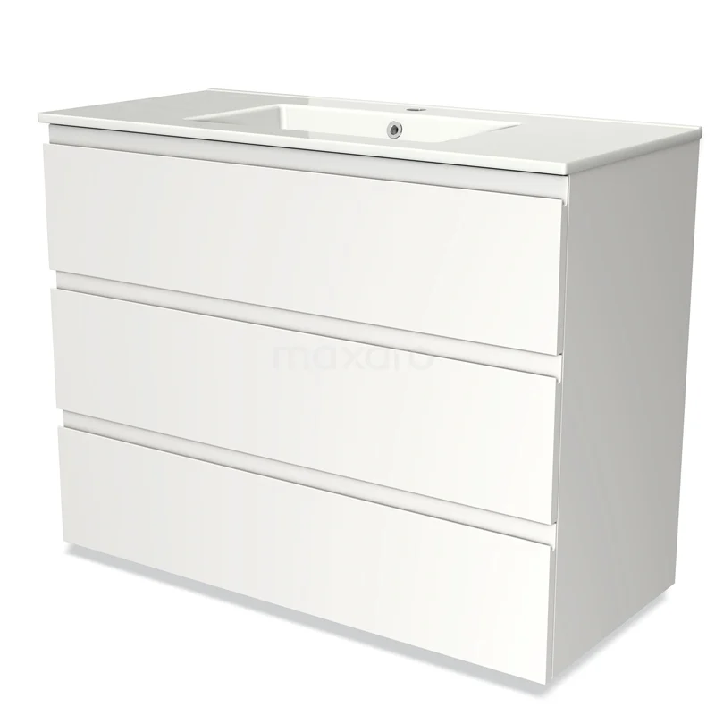 Modulo Bathroom furniture with sink | 100 cm Matte white Handle-less front Ceramic 3 drawers