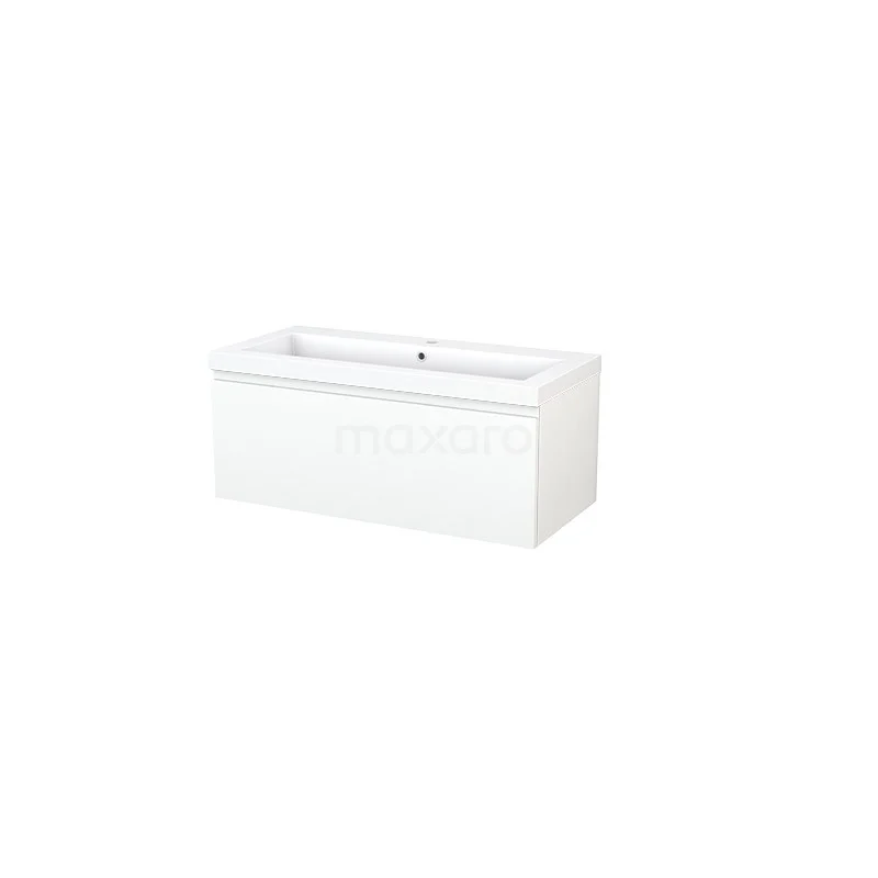 Modulo+ Bathroom furniture with sink | 100 cm Matte white Handle-less front Mineral marble 1 drawer