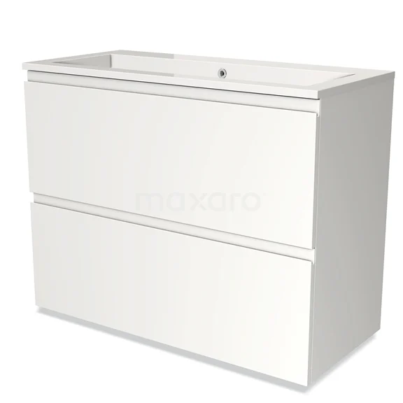 Modulo Bathroom furniture with sink | 100 cm Matte white Handle-less front Mineral marble 2 stacked drawers under each other