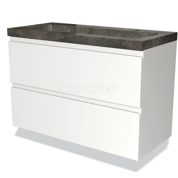 Modulo Bathroom furniture with sink | 100 cm Matte white Handle-less front Natural stone 2 Stacked drawers