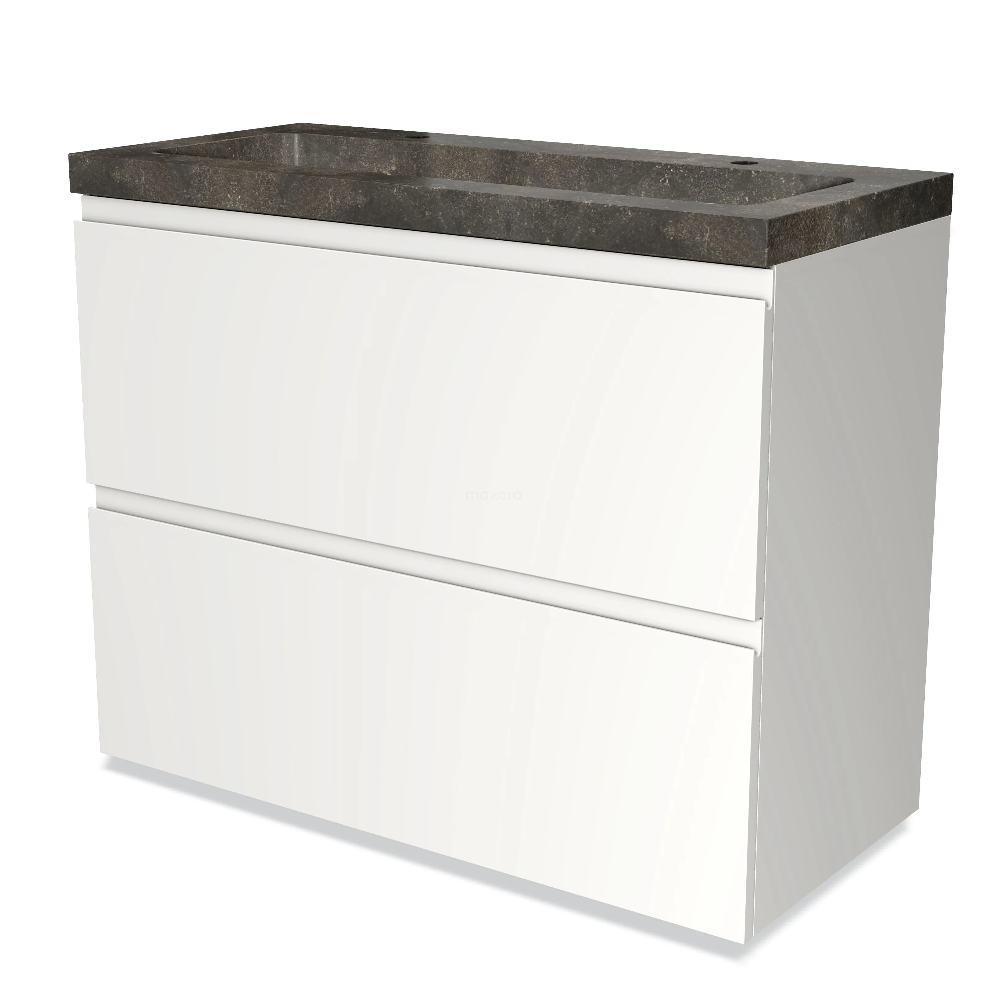 Modulo Bathroom furniture with sink | 100 cm Matte white Handle-less front Natural stone 2 stacked drawers under each other