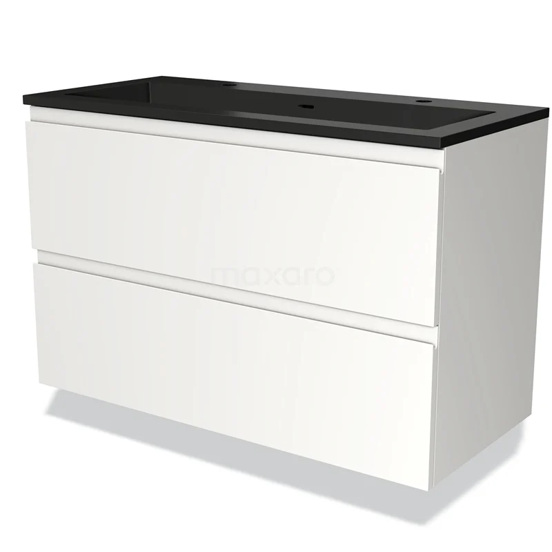 Modulo Bathroom furniture with sink | 100 cm Matte white Handle-less front Quartz 2 Stacked drawers