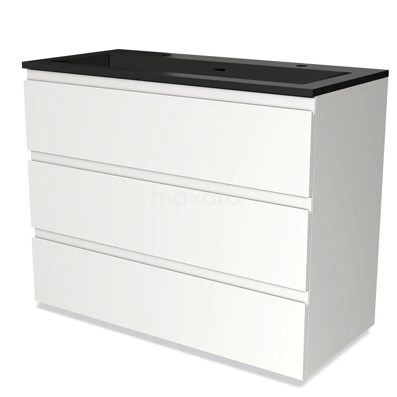 Modulo Bathroom furniture with sink | 100 cm Matte white Handle-less front Quartz 3 drawers
