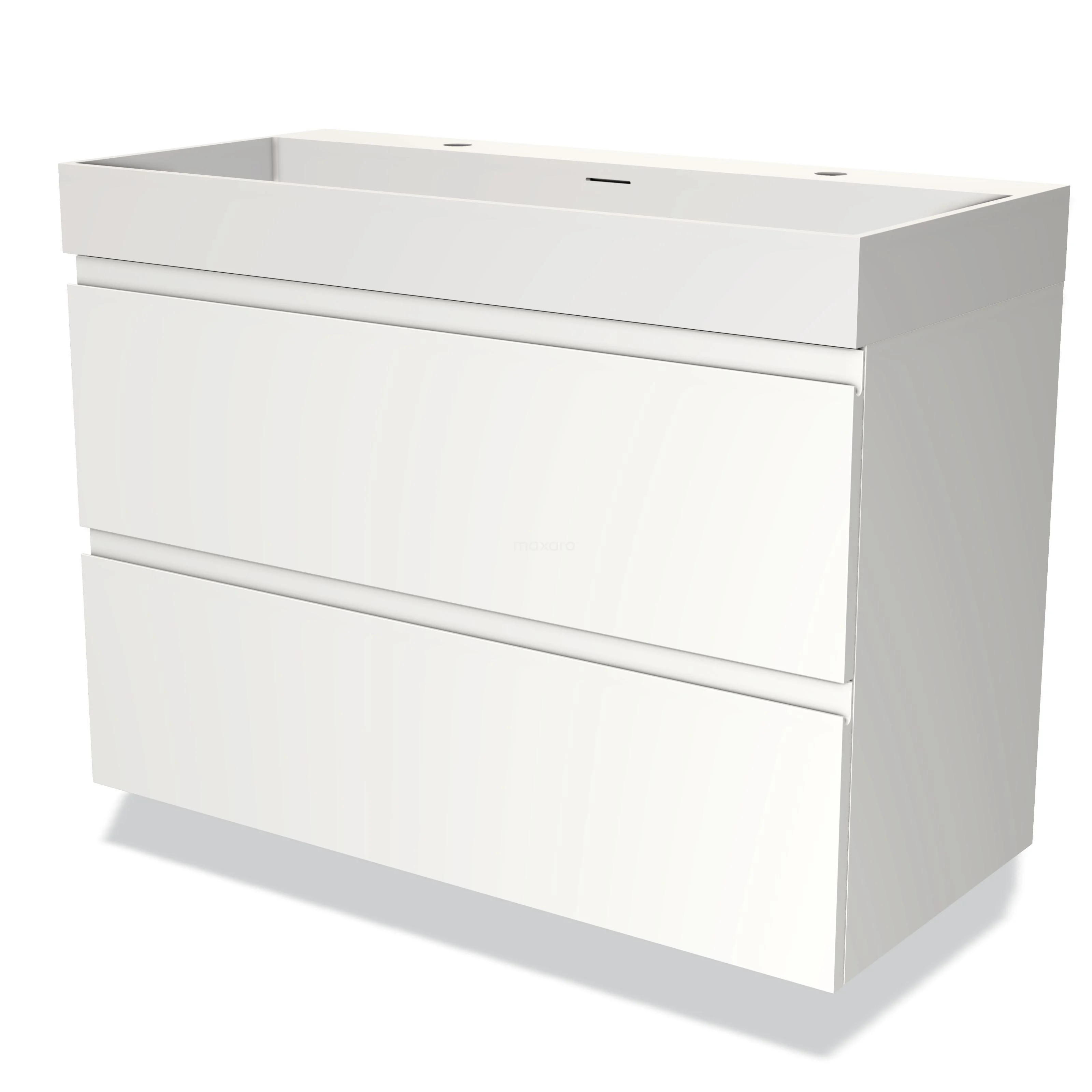 Modulo Bathroom furniture with sink | 100 cm Matte white Handle-less front Solid surface 2 Stacked drawers