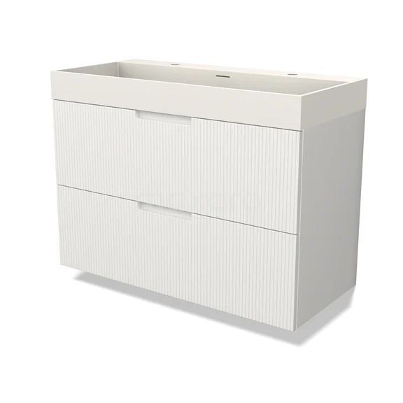 Modulo Bathroom furniture with sink | 100 cm Matte white Line front Solid surface 2 Stacked drawers