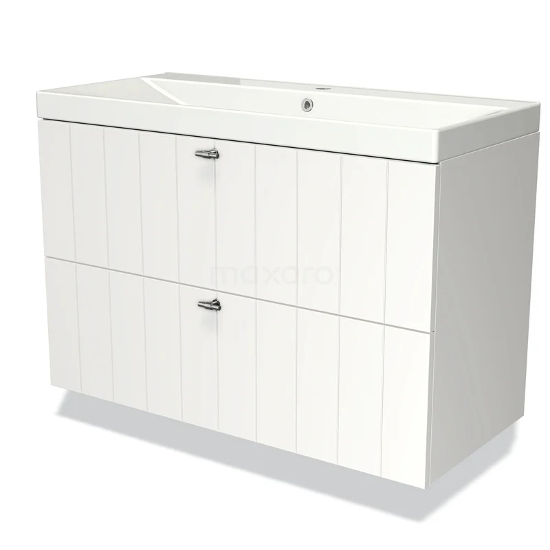 Modulo Bathroom furniture with sink | 100 cm Matte white Slat front Ceramic 2 Stacked drawers
