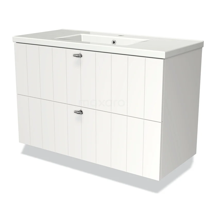 Modulo Bathroom furniture with sink | 100 cm Matte white Slat front Ceramic 2 Stacked drawers