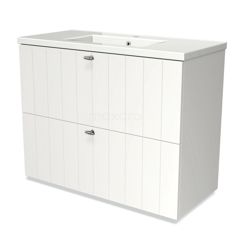 Modulo Bathroom furniture with sink | 100 cm Matte white Slat front Ceramic 2 stacked drawers under each other