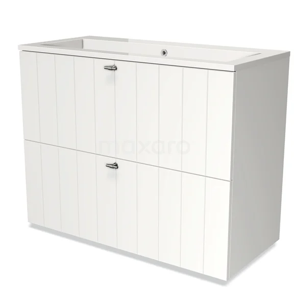 Modulo Bathroom furniture with sink | 100 cm Matte white Slat front Mineral marble 2 stacked drawers under each other