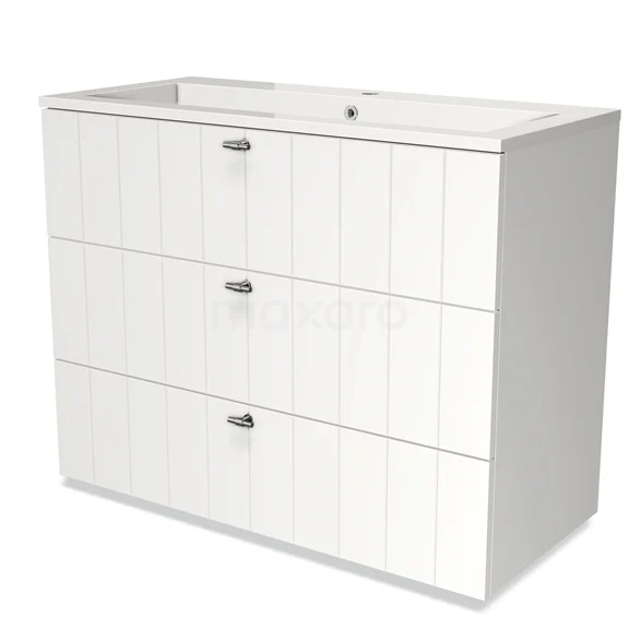 Modulo Bathroom furniture with sink | 100 cm Matte white Slat front Mineral marble 3 drawers