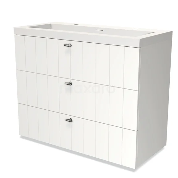 Modulo Bathroom furniture with sink | 100 cm Matte white Slat front Solid surface 3 drawers