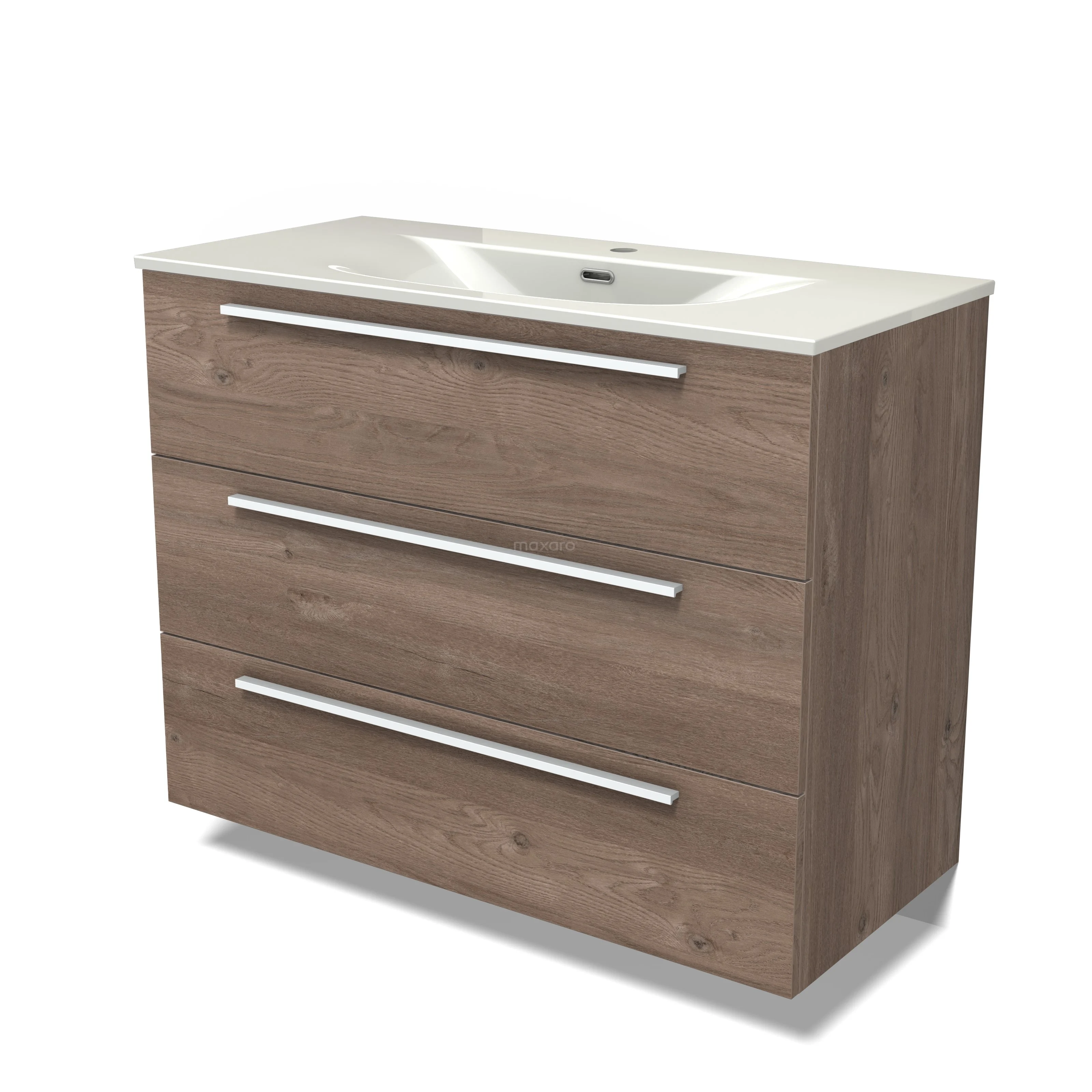 Modulo Bathroom furniture with sink | 100 cm Mid brown oak Flat front Ceramic 3 drawers