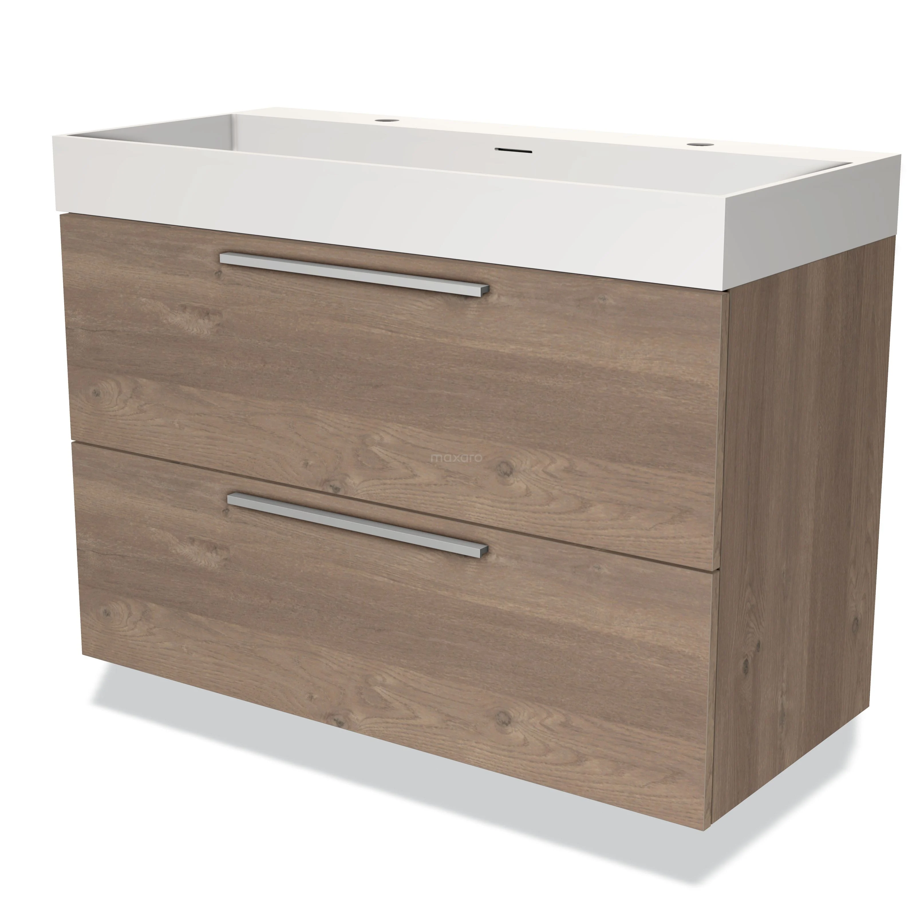Modulo Bathroom furniture with sink | 100 cm Mid brown oak Flat front Solid surface 2 Stacked drawers