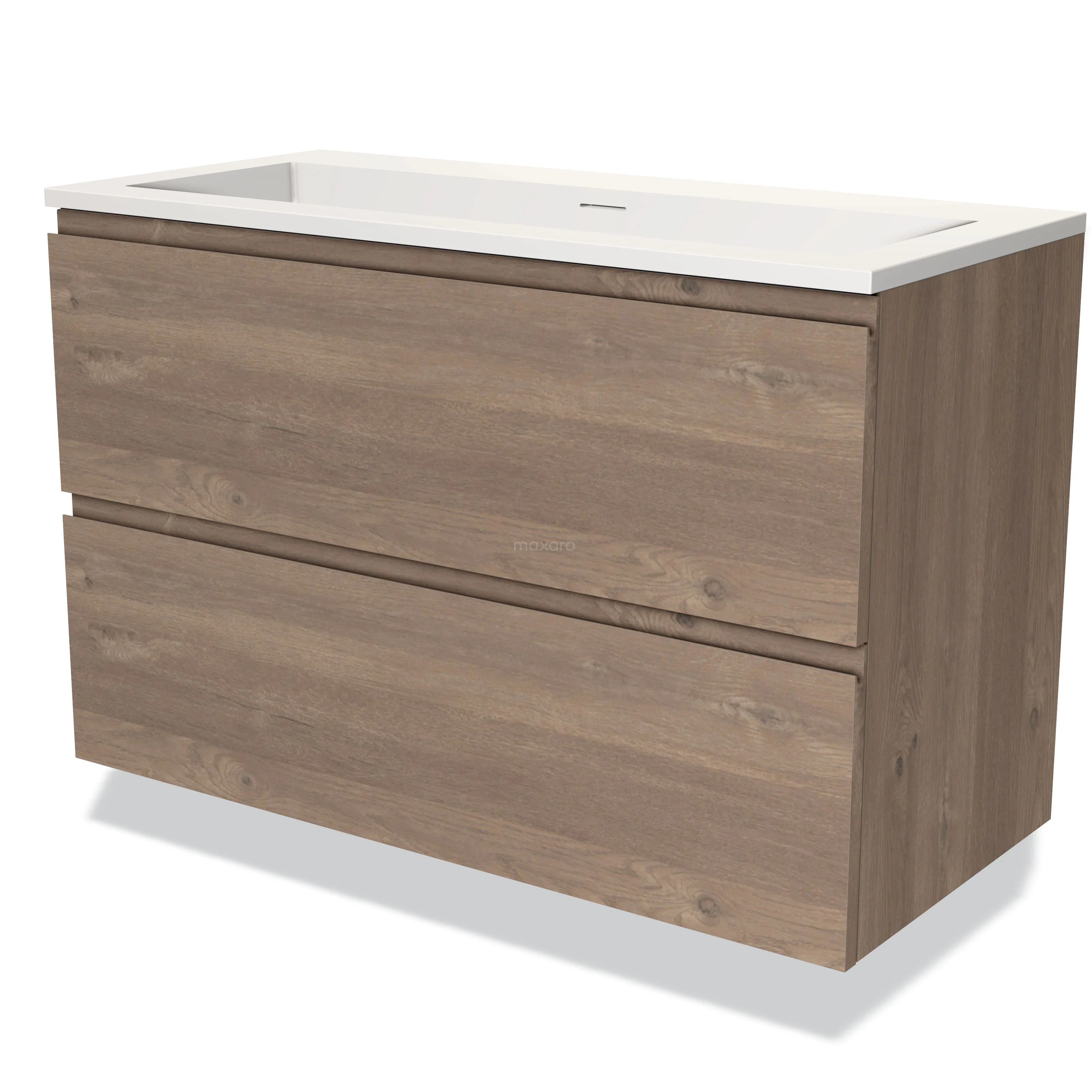 Stylish design The stylish design makes this bathroom unit the eye-catcher of your bathroom. The base cabinet features a handleless front and has a mid brown oak finish. This beautiful oak look creates a warm atmosphere in your bathroom interior. In addition, the handleless front provides a sleek touch.