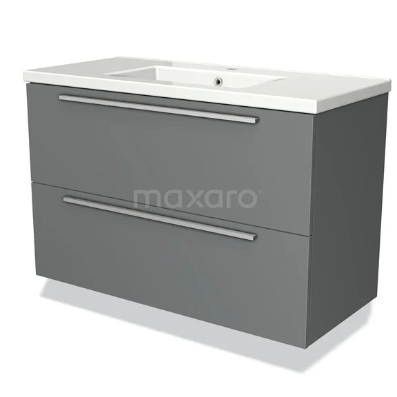 Modulo Bathroom furniture with sink | 100 cm Mid grey Flat front Ceramic 2 Stacked drawers