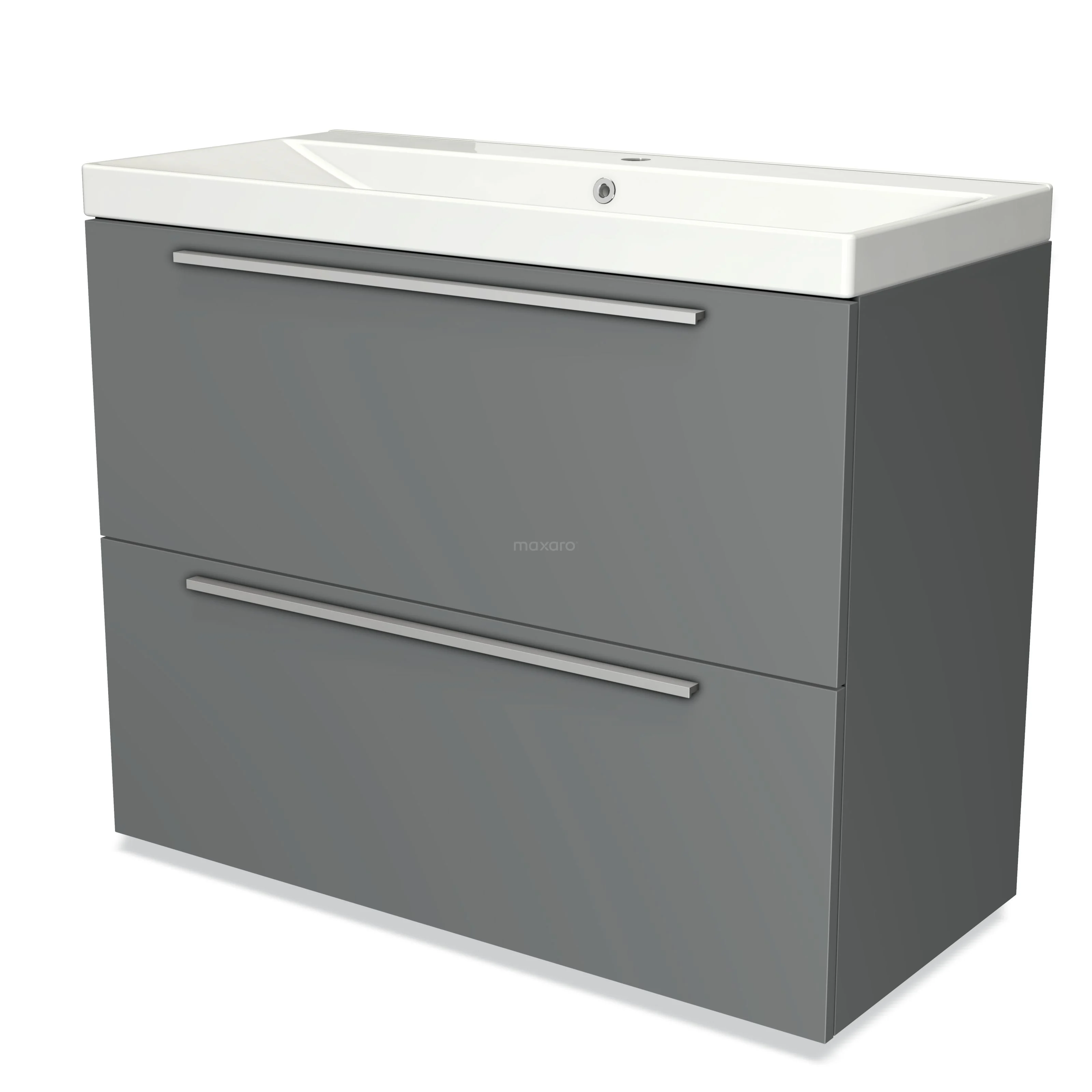 Modulo Bathroom furniture with sink | 100 cm Mid grey Flat front Ceramic 2 stacked drawers under each other