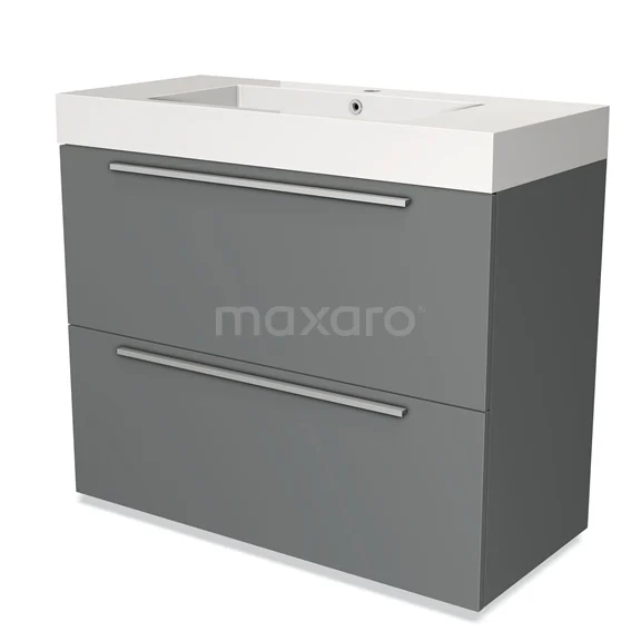 Modulo Bathroom furniture with sink | 100 cm Mid grey Flat front Mineral marble 2 stacked drawers under each other