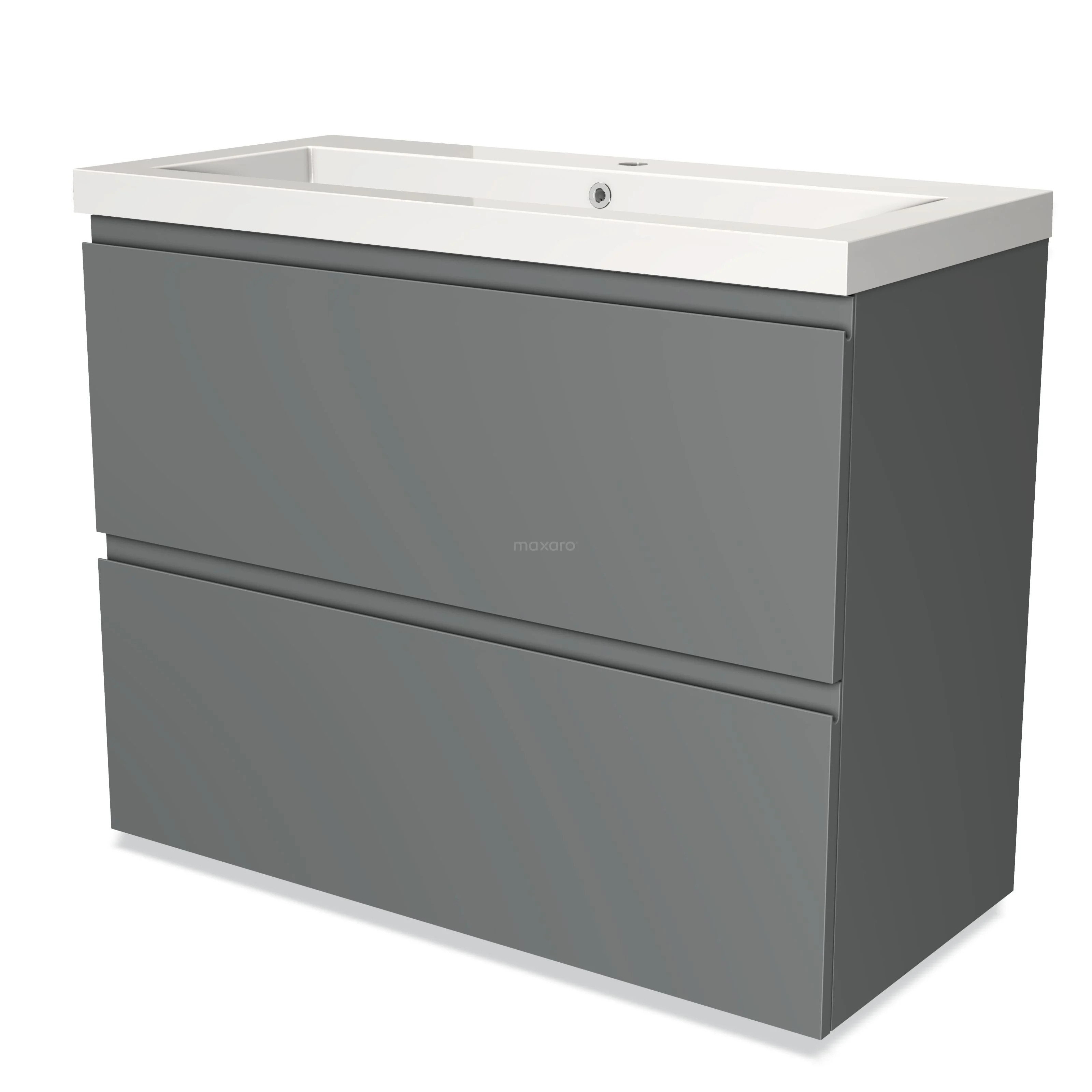 Modulo Bathroom furniture with sink | 100 cm Mid grey Handle-less front Mineral marble 2 stacked drawers under each other