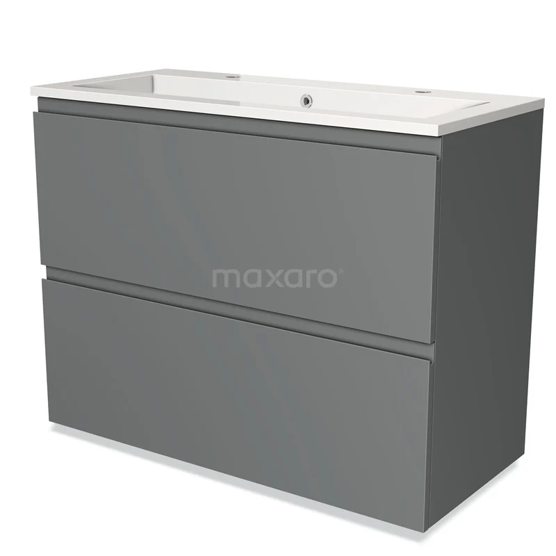 Modulo Bathroom furniture with sink | 100 cm Mid grey Handle-less front Mineral marble 2 stacked drawers under each other