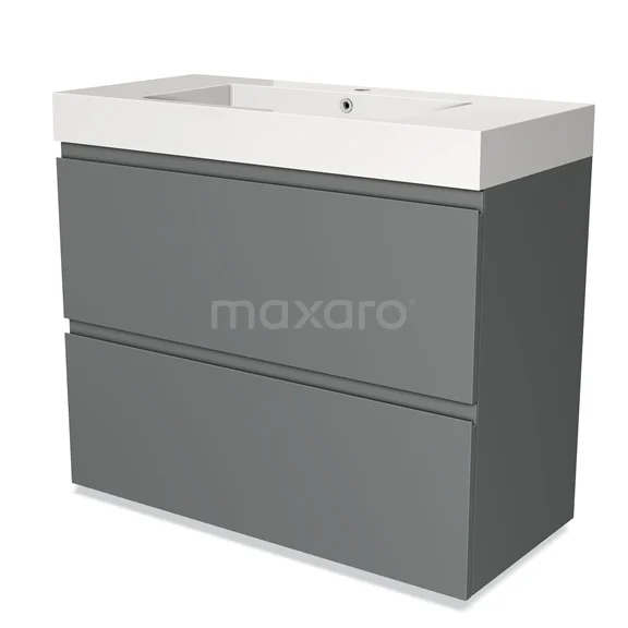 Modulo Bathroom furniture with sink | 100 cm Mid grey Handle-less front Mineral marble 2 stacked drawers under each other
