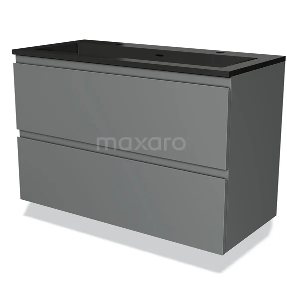 Modulo Bathroom furniture with sink | 100 cm Mid grey Handle-less front Quartz 2 Stacked drawers