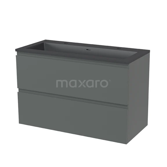 Modulo Bathroom furniture with sink | 100 cm Mid grey Handle-less front Quartz 2 Stacked drawers