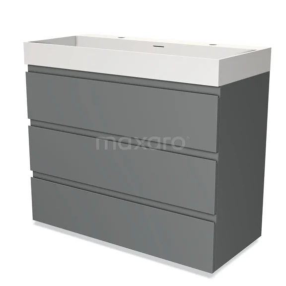 Modulo Bathroom furniture with sink | 100 cm Mid grey Handle-less front Solid surface 3 drawers