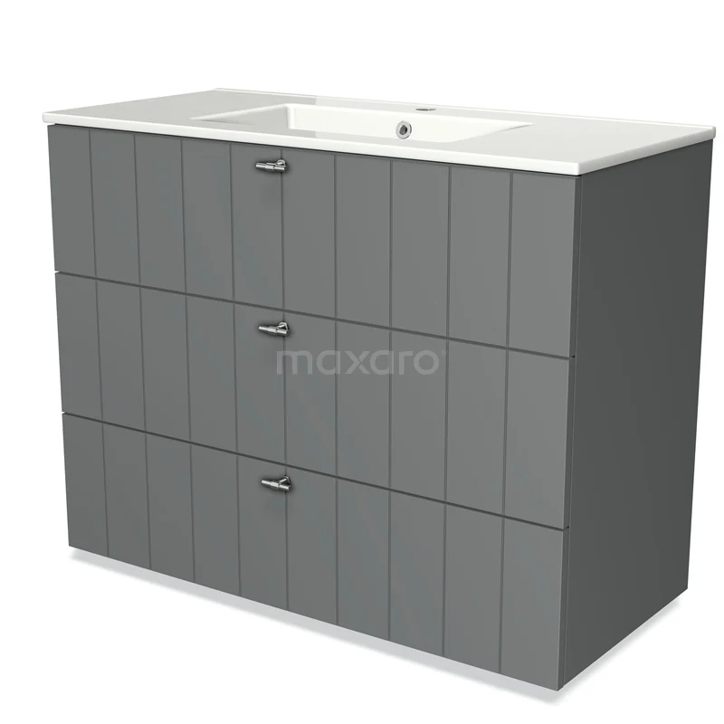 Modulo Bathroom furniture with sink | 100 cm Mid grey Slat front Ceramic 3 drawers