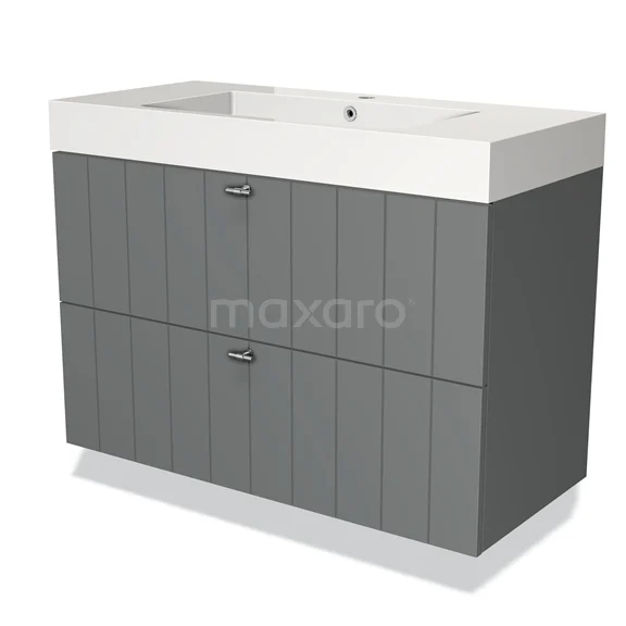 Modulo Bathroom furniture with sink | 100 cm Mid grey Slat front Mineral marble 2 Stacked drawers