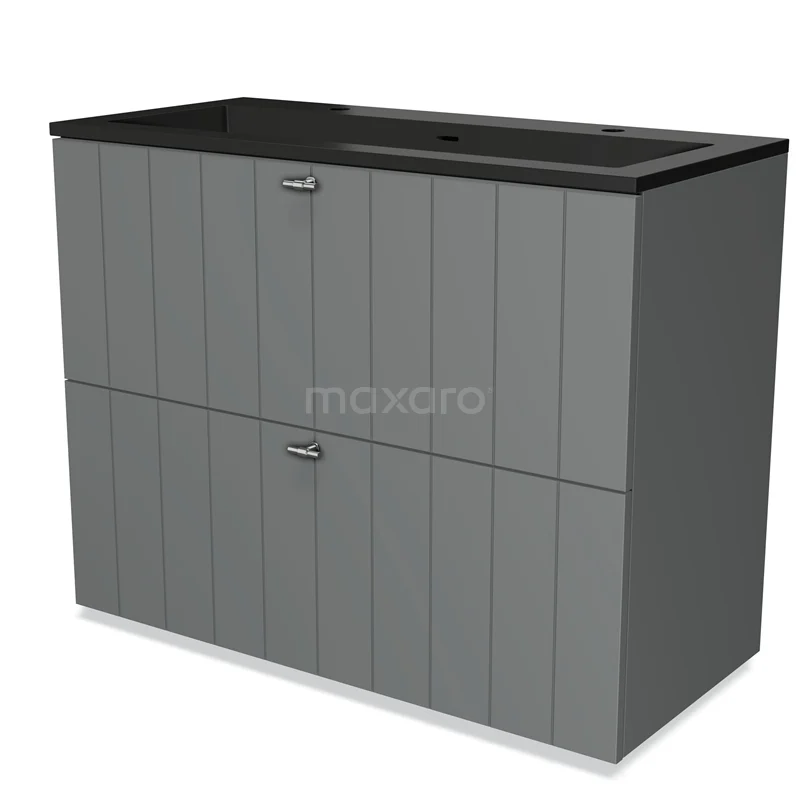 Modulo Bathroom furniture with sink | 100 cm Mid grey Slat front Quartz 2 stacked drawers under each other