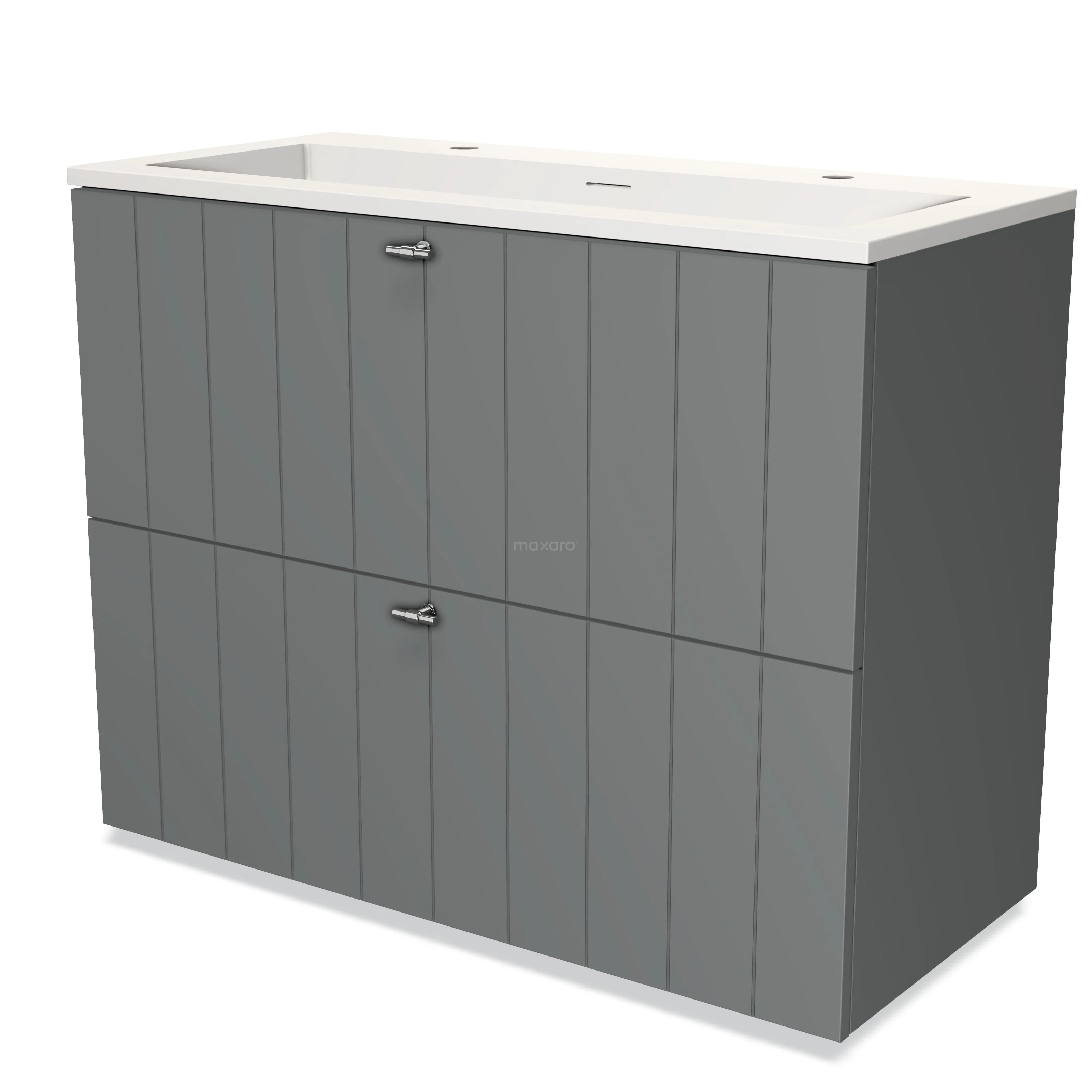 Modulo Bathroom furniture with sink | 100 cm Mid grey Slat front Solid surface 2 stacked drawers under each other
