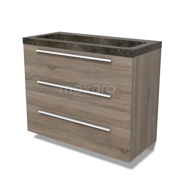 Modulo Bathroom furniture with sink | 100 cm Oak Flat front Natural stone 3 drawers