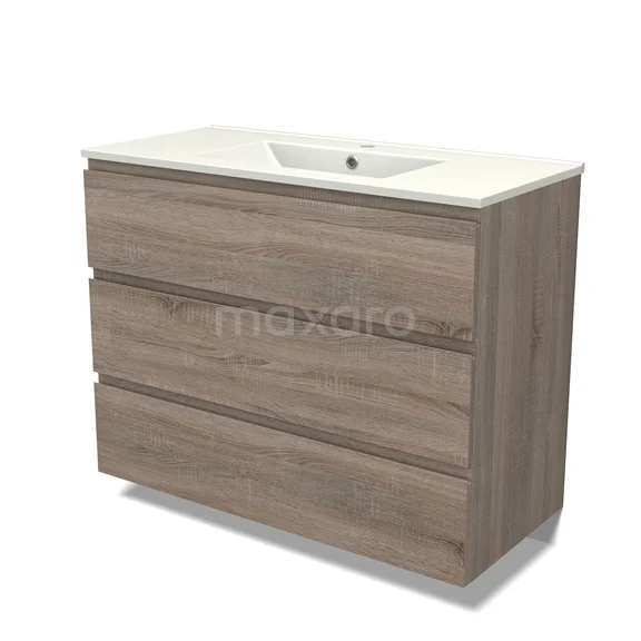 Modulo Bathroom furniture with sink | 100 cm Oak Handle-less front Ceramic 3 drawers
