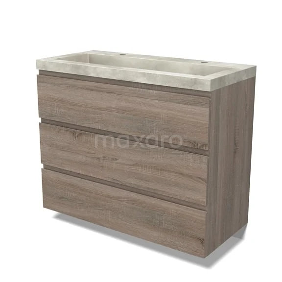 Modulo Bathroom furniture with sink | 100 cm Oak Handle-less front Concrete 3 drawers