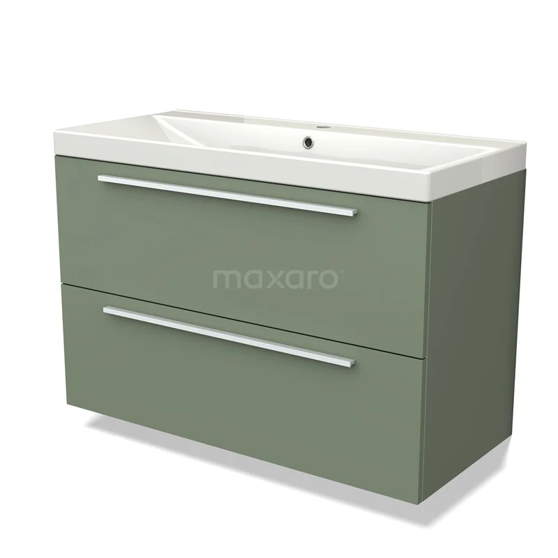 Modulo Bathroom furniture with sink | 100 cm Sage green Flat front Ceramic 2 Stacked drawers