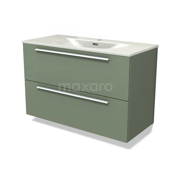 Modulo Bathroom furniture with sink | 100 cm Sage green Flat front Ceramic 2 Stacked drawers