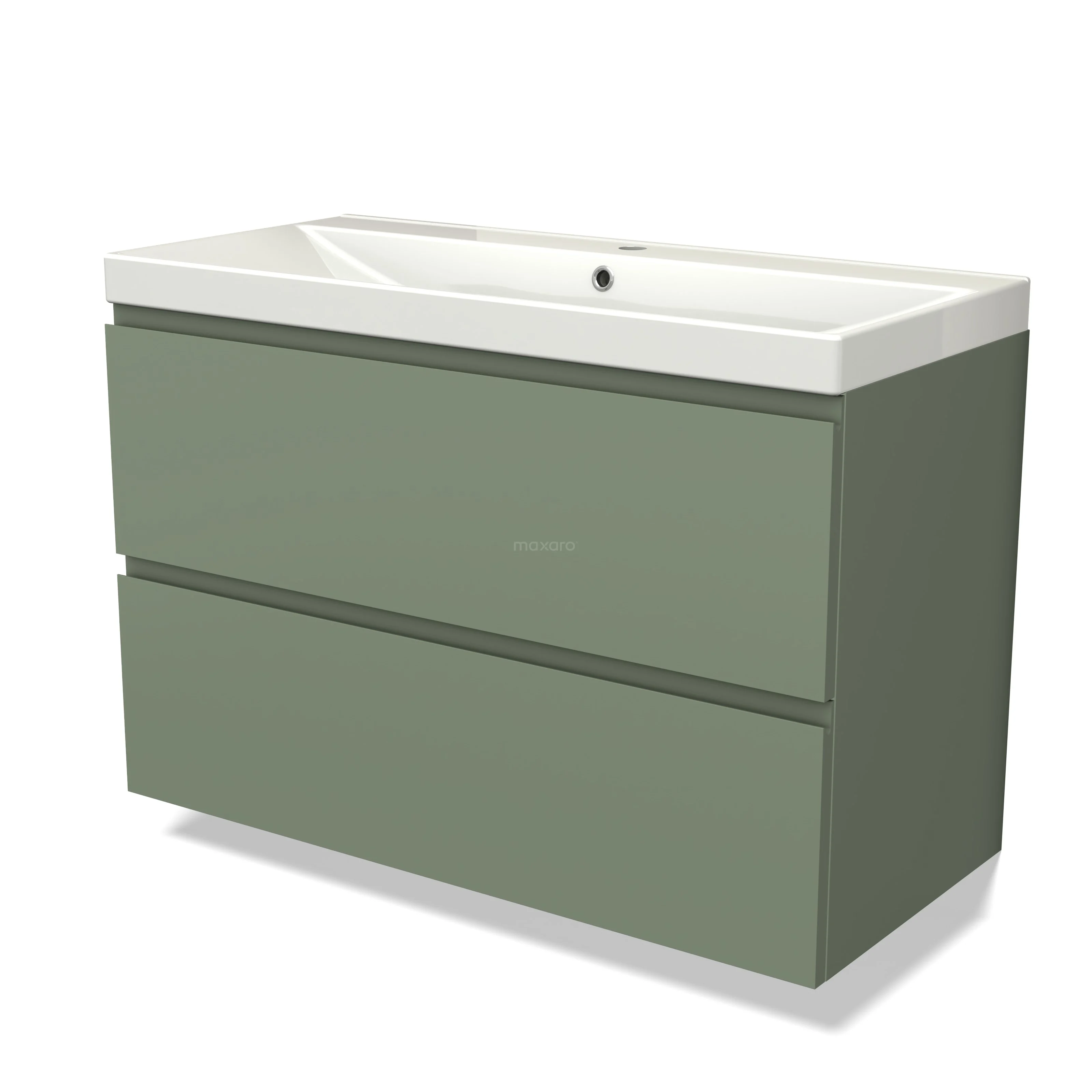 Modulo Bathroom furniture with sink | 100 cm Sage green Handle-less front Ceramic 2 Stacked drawers