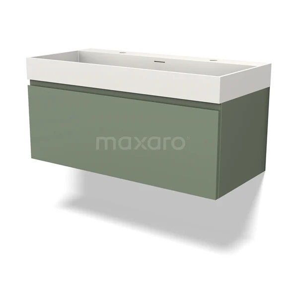 Modulo Bathroom furniture with sink | 100 cm Sage green Handle-less front Solid surface 1 drawer
