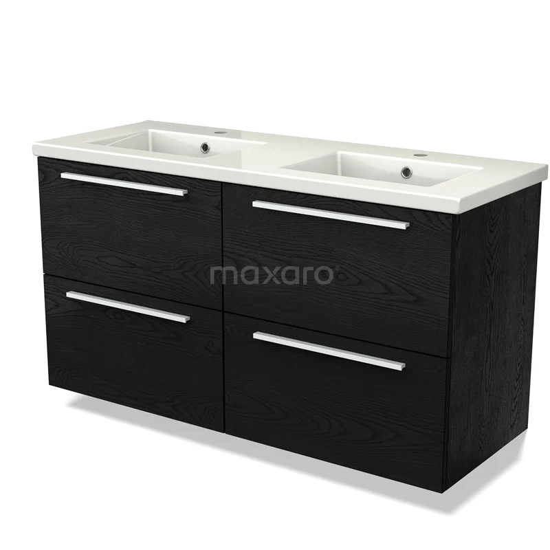 Modulo Bathroom furniture with sink | 120 cm Black oak Flat front Ceramic 4 drawers