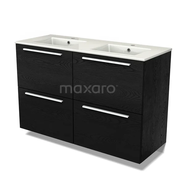 Modulo Bathroom furniture with sink | 120 cm Black oak Flat front Ceramic 4 high drawers