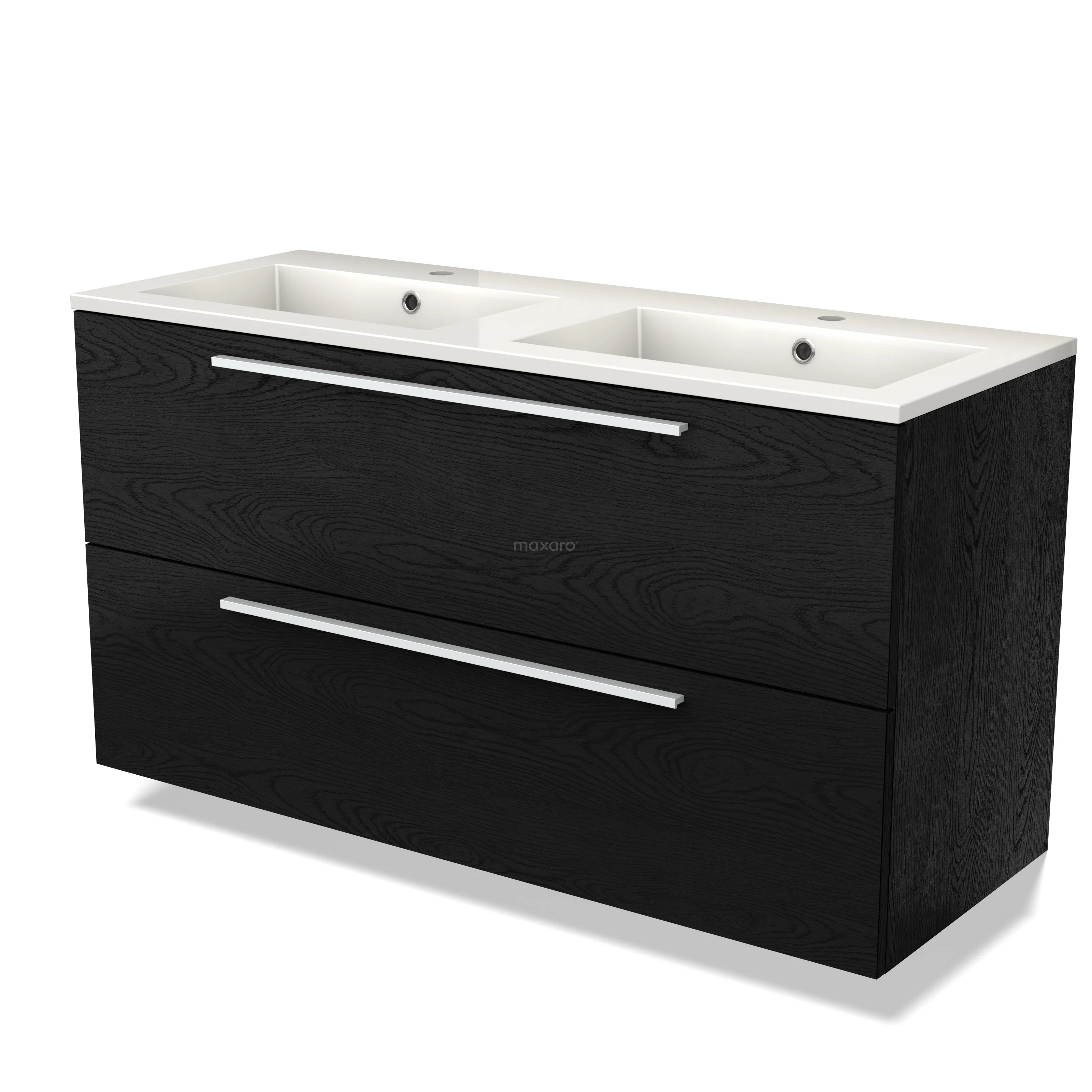 Modulo Bathroom furniture with sink | 120 cm Black oak Flat front Mineral marble 2 Stacked drawers