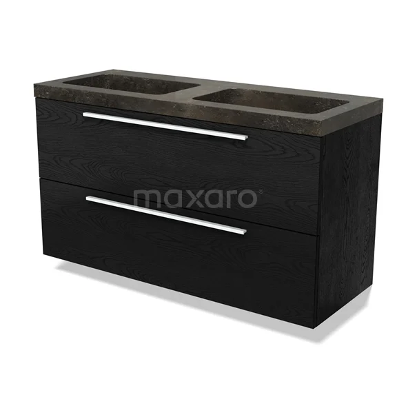 Modulo Bathroom furniture with sink | 120 cm Black oak Flat front Natural stone 2 Stacked drawers