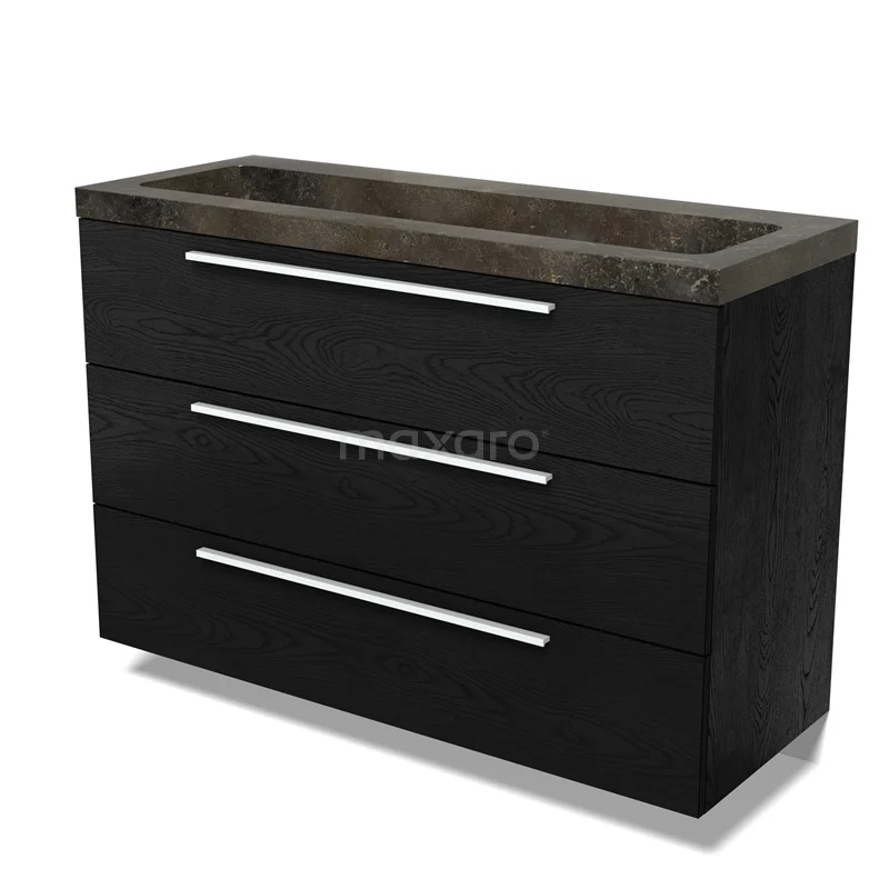 Modulo Bathroom furniture with sink | 120 cm Black oak Flat front Natural stone 3 drawers
