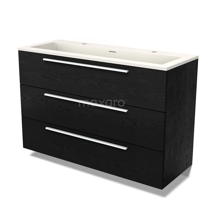 Modulo Bathroom furniture with sink | 120 cm Black oak Flat front Solid surface 3 drawers