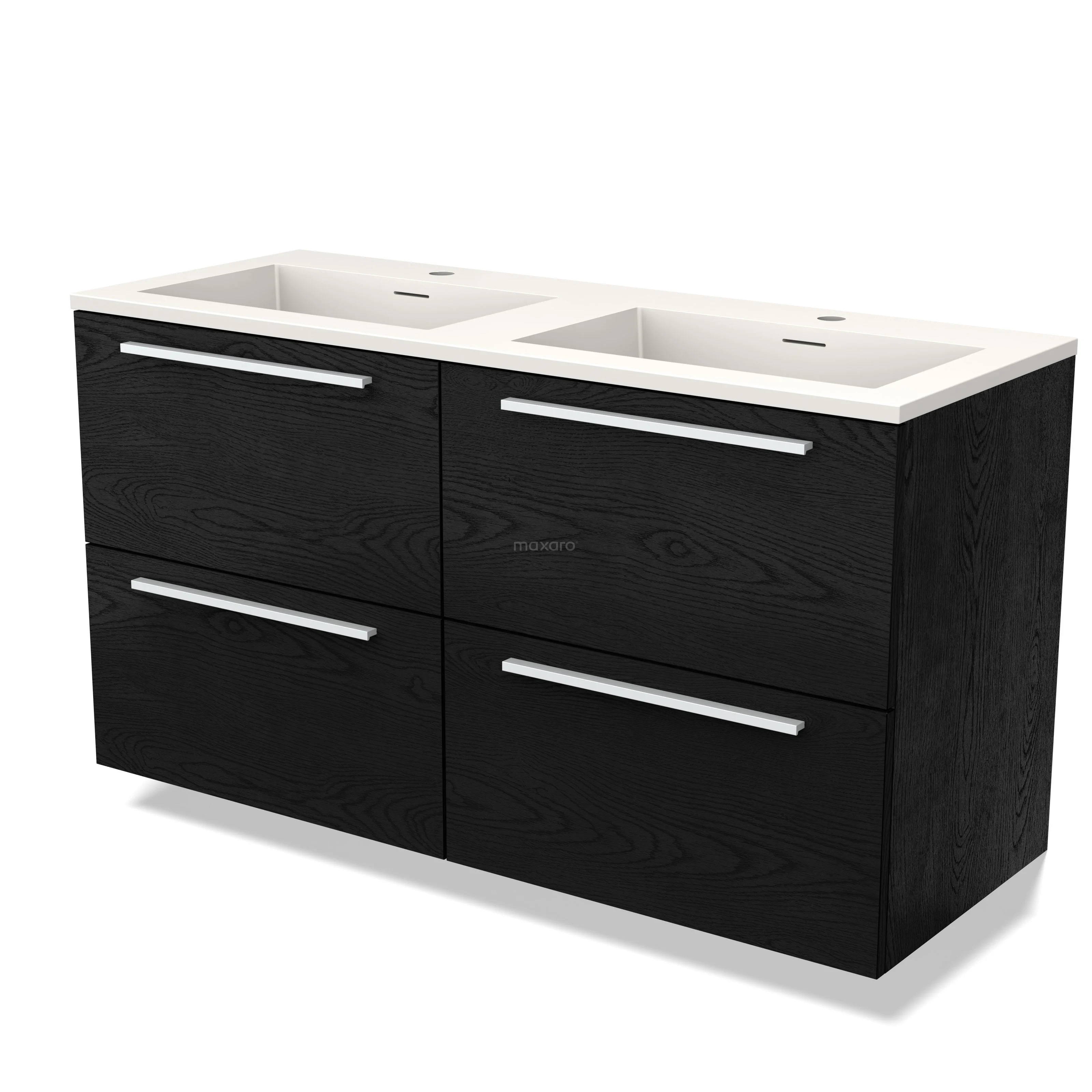 Modulo Bathroom furniture with sink | 120 cm Black oak Flat front Solid surface 4 drawers