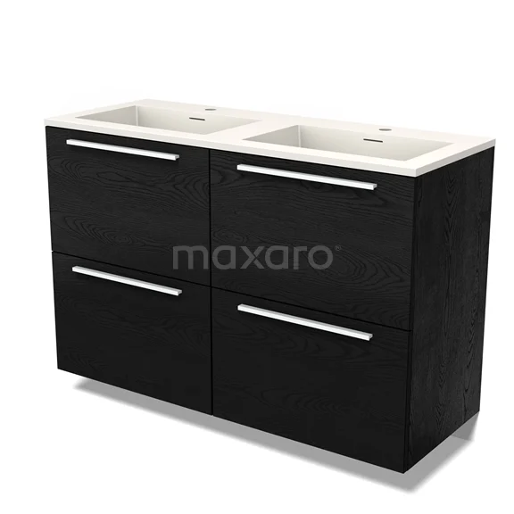 Modulo Bathroom furniture with sink | 120 cm Black oak Flat front Solid surface 4 high drawers