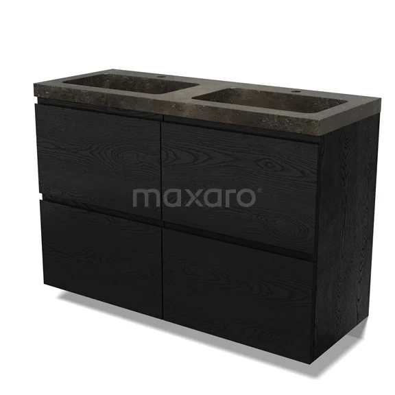 Modulo Bathroom furniture with sink | 120 cm Black oak Handle-less front Natural stone 4 high drawers