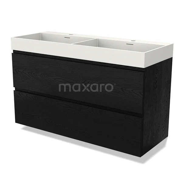 Modulo Bathroom furniture with sink | 120 cm Black oak Handle-less front Solid surface 2 Stacked drawers