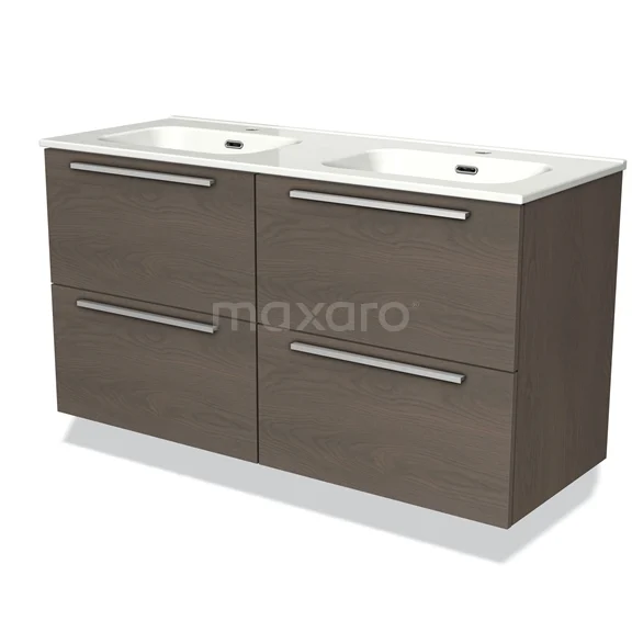 Modulo Bathroom furniture with sink | 120 cm Dark brown oak Flat front Ceramic 4 drawers