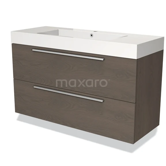 Modulo Bathroom furniture with sink | 120 cm Dark brown oak Flat front Mineral marble 2 Stacked drawers